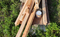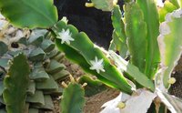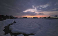 連日の寒波で葉に置いた大きな露も凍る。 露どころか、バケツを横倒しにしても...。 別のバケツの氷は厚さ1cmぐらい。 あられか何かが振ったか、畑の土の上でも融けずににそのまま。 コン柱のあたりを見ると、何やら違和感。出してもいないのに水が出ている。よく見て…
