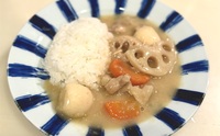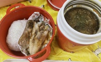 お肉屋さんの鶏もも肉は大きめで、400グラム程。フォークで穴を開け、1パーセントのお塩を刷り込み、お酒に数時間漬けました。 炊飯器に、お米2合に、いしる(魚醤)、胡麻油(各大さじ1)、おろし生姜ににんにくを加えて鶏肉をのせて 青ネギやグローブの実を加えてお…