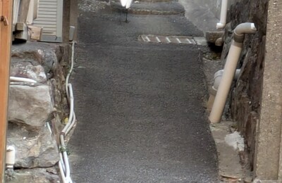 先日、毎朝の日の出観察ウォーキング、異常な風に飛ばされそうになりながらも行った帰り道の事です。 路地の階段にバサっと大きな鳥が舞い降りてきました。 ん? 一瞬、何? ここは普通の道よね? 何? え?鶴? こんなとこに鶴はいないよね〜… 大人2人並ぶとキツイくらいの本当狭い道です。 私たちがゆっくり近付くと、更に上の階段まで歩き、手すりに止まりました。 で、その先の草むらに入って行きました。 いや〜…