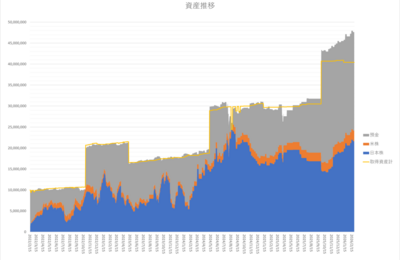 評価損益前日比-1,416,700円 直近上げた反動の下げ。 全面安でも強い。