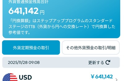 米ドル積立、毎月10万円を半年やって売却しました。 今回は円安ドル高になったので、 含み益(利息含む)約四万 ボーナス金利2千円 米ドルの半年の金利が少し下がってきましたね。
