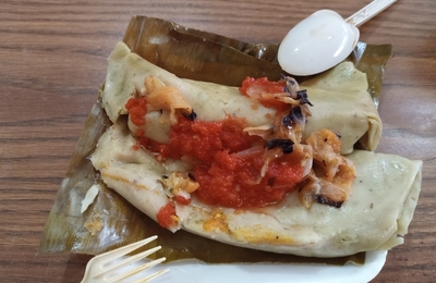 1月も17日にまでなってようやく始まったマヤ語クラスは、かろうじて2回やってまた、カンデラリアの日という「タマレスを食べる」イベントで潰れた。カンデラリアが何なのか知らないが、1月6日のロスカに人形が入っていた人がタマレスを奢る日である。 タマレス。上にかかってるのはトマトサルサとハバネロサルサ。 メキシコ南部や中米の国では、とうもろこしの皮でなくバナナの葉で包む。この蒸して作るタイプは、ユカタン…