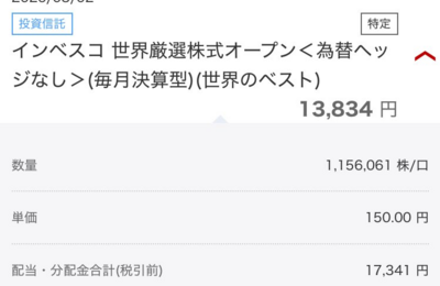 今日は1銘柄の分配金が入金。 楽天証券 ・世界のベスト 13834円 マネックス証券・世界のベスト 1725円 SBI証券 ・世界のベスト 80円 合計 15639円となる。 世界のベストやカバコなどはたこ足・手数料が高すぎる・非効率だのいろいろないわれようだが、1ヶ月でも長く分配金を受け取り続けた者のみが元を取れる。 今後もほどほどに増やしていきたいところではある。 さらに2月の権利日を通過。 …