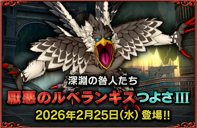 人気ブログランキング 2026年2月25日(水)6:00に「深淵の咎人たち」の「4人パーティバトル」に、厭悪のルベランギスつよさⅢ が登場! 「深淵の咎人たち」の「4人パーティバトル」で、「厭悪のルベランギス」つよさⅢに挑戦できるようになります。 究極状態となった「厭悪のルベランギス」に打ち勝つことができるか……!?との事っス! ま、私はエンドコンテンツは一切やらんのでどうでもいいです 「厭悪のル…