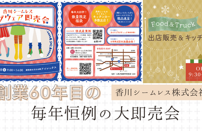 2025年も毎年恒例、年末即売会を12月7日(日)に開催いたします! 例年同様、弊社香川シームレス㈱で生産したストッキングやタイツはもちろん、ソックスやサポーター、弾性ストッキング、着圧ソックス、婦人服やインナーなどを販売します。 k-seamless.hatenablog.com 他社さんの出店もありますので、レッグウェア以外にも婦人服や雑貨、タオルなど様々な商品が格安で手に入ります! 昨年も大…