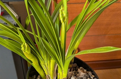 昨年末に購入したシンピジュウムが、芽かきと株分けをして少し大きい鉢に植え替えしました。 今年も花芽が膨らみました。 3本立てでしたが、今年は2本の花芽、少し短いですが嬉しい😄 花芽を付けるには花後の芽かきと11月頃は寒さに当てる事が大切のようです。 来年はもう少し大きい花芽が付くようにしたい♫ シンビジウムは、高い邪気払い効果と良い運気(特に金運・仕事運・家庭運)を呼び込む強いエネルギーを持つ風水…