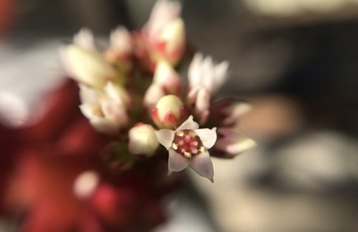 今日は紅葉した火祭りの花の写真を載せます。 まずはこれが花です。 大きくして見ています。 可愛らしいですねぇ💕 花そのものは大変小さいです。 花を愛でるのではない、火祭りは姿を見て色の変化を見て楽しむ植物なのですね💕 私が多肉植物に興味を持ったキッカケは素朴な花が素敵だったから😊 これほど赤くなると美しいですね。 夏は緑色でした。 2025年12月1日撮影。 クラッスラ属 火祭り(ヒマツリ) zu…