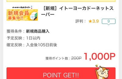 ご覧頂き、ありがとうございます♩フツーOL♡ひとみんです! 今日も、ポイントチリツモ報告です!今回はモッピー経由で、イトーヨーカドーネットスーパーにお世話になりました♡ 我が家は毎週日曜日、1週間分の食料品を買い出ししています。車は所有していないので、主人と2人で自転車に乗って買いに行きます。お昼は2人とも弁当持参なので、1週間の食料品となるとスーパー袋で4、5袋くらいになります。なので主人がいな…