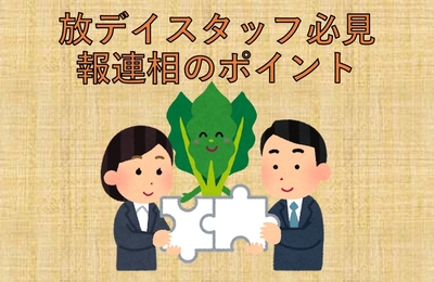 【放デイブログの運営者】 ryouiku-smm.site 今日は「放課後等デイサービススタッフ必見!!報連相のポイント」というテーマです。放課後等デイサービスでは毎日様々な業務やお子様の情報を扱います。その中で大切になってくるのが「報連相」を確実にスタッフ間で行うということです。今回はこの報連相について一緒に考えて行きましょう。 放デイは他職種が働く複雑な職場環境 ●他職種が働く職場は報連相が特…