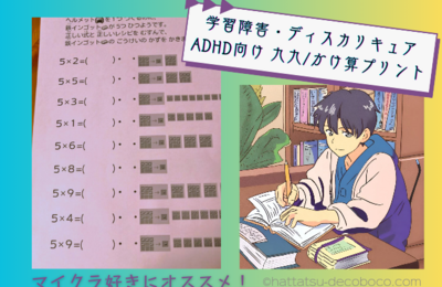 重度ディスレクシア&ディスグラフィア&ディスカリキュアな 長男のために、わたくしRicca@Xが母の愛だけで作成しました。 マイクラ&ゲーム好きな子にオススメな九九のプリントです。 下記にダウンロードできるリンクを貼っています♪▶▶このプリントが合う人 ・ワーキングメモリが弱い ・聴覚的記憶能力が弱い ・音韻処理能力が弱い ・全体像を捉える力はあるが順序立てることが苦手 ・通常の学校で習うような学…
