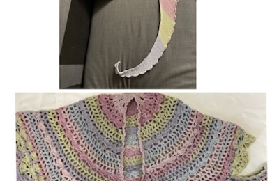 前に少し出しましたがベスト製作中です。 すごーくゆっくりやってるので、写真撮り忘れや制作中のあれこれを忘れそうなので経過報告の記事を作ることにしました。 このベストの毛糸は実は… このショーレットやストールを編んだものを解いたものです。 カナダで購入して、作ったものの活躍しない… ショーレットはおしゃれに巻けないし、ケープは袖が邪魔で着ないんです。 そこで目に入ってきたのが、421miyako (…