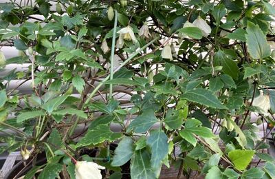 お花と話そう 花とみどりで潤いと癒しの空間に・・・冬咲きクレマチスがだいぶんと花を付けてきましたよ。 可憐な花ですね~ クレマチスと言っても花は小さく存在感も薄いですが、我が家の冬には貴重な花です。