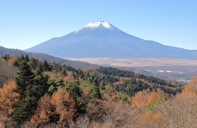 2025年11月24日(祝・月)二十曲峠展望テラスから富士山を望む 石割山まで登り、山頂近くで少し休憩をしてから杓子山方面、二十曲峠まで下る。二十曲峠では初めて「二十曲峠テラスSORAnoIRO」を訪ねるので楽しみだ。 平尾山以降チラチラと見えていた南アルプスだが、石割山付近に来るとようやく展望が開けてズラリと見えてくる。休憩した鉄塔辺りに来ると白峰三山付近から甲斐駒ヶ岳まで、良く見えた。 南の方…