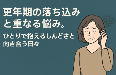 何をしても楽しめない日々。それでも前に進むために 更年期と心のゆらぎ。重なる悩みにどう向き合うか こんばんは(^-^)ここ1ヶ月ほど、気分の落ち込みが続いています。更年期の影響もあると思いますし、季節の変わり目ということも関係していそうです。ただ、これまで経験したことがないほどしんどさが続いたので、婦人科に相談に行ってきました。 婦人科で言われた「身体症状には効くけれど…」 更年期障害の治療として…
