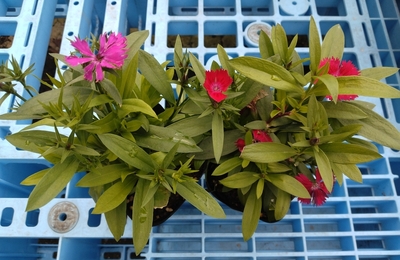 1つ50円に値下げのなでしこの苗 来春〜秋まで咲くらしい 多年草なのかな? 同じく50円のノースポール、他ビオラ、葉牡丹、など次々増えていき、 寄せて植える😀🥯 AM4:15 職場にコソッと設置🤭😁 こちらは、上半分の枯れた所に植え直し ↓上の木の棒は、バイクの雪落とし用を、花が倒れないように、所長がグサグサ刺したもの おっちゃんたちの反応が楽しみ🎶 花が綺麗だと何か煙草も吸わないし、大人しいんで…