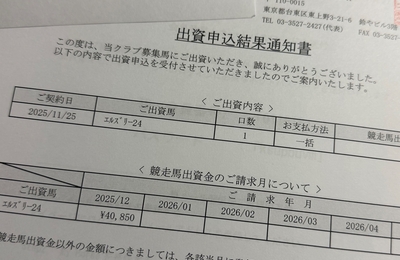 ノルマンディー ノルマンディーの一次募集は検討した際にエルズリーがどうしても気になってきて… どうも今年の募集でも上から3番目位の人気位で母やツアー優必至みたいな状況だったようで… 新規枠で狙えるなら行っちゃおうかなと勢いで申し込みました 結果としては新規枠での抽選は無く、無事出資できることになりました これからはノルマン会員としてもやっていきます …これでクラブが3個になるので月会費だけで500…