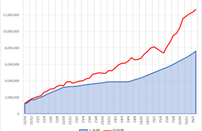現在の資産 自民党が圧勝してから日本株はガンガン上がっているのにアメリカ株は置いてけぼり。イランと戦争を始めて更に下がりそう。だからといって特に何をするわけでもないです。ひたすら耐えるのみ…と言いつつもNASDAQを買う気がなくなっています。収入が安定しないと方針がぶれ始める。・現金 1,574,964円(-20,491) ・金融資産 12,654,253円(+322,127) ・金貨 1,291…