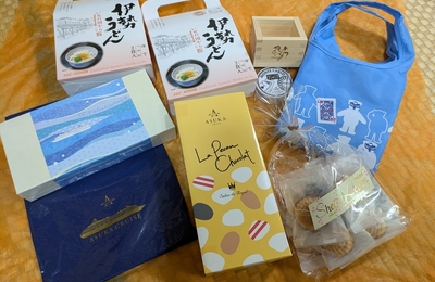 伊勢神宮の門前町おはらい町やおかげ横丁で買ったものや、 ※鳥居の写真は消しゴムマジック処理しています 飛鳥Ⅱのショップ、ル ブルーで買ったオリジナル菓子2種 カジノモンテカルロのポイントでゲットしたGoods2点 初春会席で出された溢れるほど入ってなかったけど^^食前酢の枡 もっきりとか盛りこぼしというんですね🍶 おはらい町でTが買った720ml梅酒の試飲よりジンジンしたお酢でしたけど… 2026…