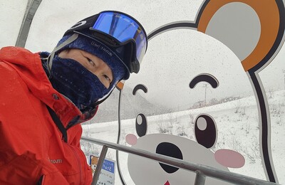だいくらスキー場のリフトには「だいちゃんリフト」があります。今日はこれに乗ることが出来ました。 さて、天気は予報通り雨。 強くならなければいいなと思っていましたが、朝起きると降ってはいますがそうでもないです。 カッパを来てゲレンデに出ると、雪は堅からず柔らからずいい感じでした。 板も走るし問題ないです。 そうか「だいちゃん」はPRスタッフなんだね。 今日は2回もこれに乗ることが出来ました。 雨予報…