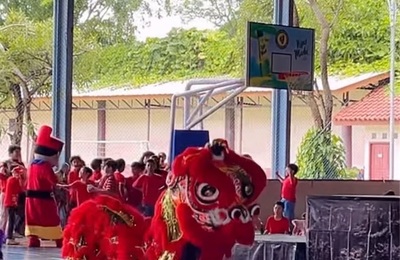 こんにちは❣️ ジャカルタの現地校に通う小学校一年生の女の子を子育て中です。 学校では中国語が必須科目で入っているくらい、中国の色も強い学校です。 さて、旧正月イベントでバロンサイ(中国の獅子舞)が学校にやってきました😊 中国の伝統芸能で旧正月やお祝いの時に踊られます。 中に2人の人間が入っていて、絶妙なタイミングで踊ります😊 特徴 ・カラフルな獅子の衣装 ・太鼓やシンバルに合わせてジャンプしたり…
