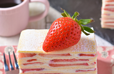 いちごの春巻きミルクレープ|フライパンいらずで時短! 春巻きの皮で作る、手軽で華やかないちごスイーツ。クレープを何枚も焼く手間。。。省いてしまいました♪春巻きの皮で簡単にクレープ生地が作れます!!フライパンでたくさんクレープを焼かなくていいのでミルクレープも難なく作れちゃいました。調理時間も大幅にカットできます。 断面のいちごが美しく、特別な日のデザートにもぴったりです。もうすぐひな祭り🌸桃の節句…