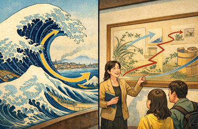 葛飾北斎の展示を見た帰り、駅までの数分、ずっと考え込んでいた。展示作品が凄かったからでもある。でもそれ以上に、頭の中に残っていたのは別の感覚だ。 hokusai2025.jp 見たあと、自分の言葉や表現の感覚が増えていく感じ。 さっきまで「なんとなく迫力がある」で終わっていた線が、次の瞬間から「視線を運ぶ線」に見える。帰宅して別の画像を見ても、同じ場所で目が止まる。鑑賞が一回で終わらず、次の鑑賞に…