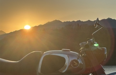 新年あけましておめでとうございます。 皆様にとって良い年になります事をお祈り致します。災害や紛争の無い年になれば良いと思います。 ついでに私にとっても良い年になって欲しいです。 本年初走りはスポーツカブC110にて。元日は曇りかな?と思ってましたが朝は快晴で綺麗に初日の出が見れました。単車+初日の出の写真としては過去一良かったかも。 改めてこの地区では初日の出が讃岐山脈に阻まれて予想の初日の出時間…