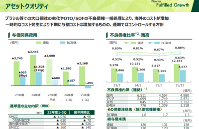 持ち株決算振り返り&感想記事です。今回は三井住友FGについてまとめました ※【】内は証券コード、()内は2/6時点の配当利回りです 【8316】三井住友FG(2.66%) 【8316】三井住友FG(2.66%) ・26.3期の第3四半期連結純利益は前期比22.8%増の1兆3947億円 ・通期計画の1兆5000億円に対する進捗率は92.9% 〇感想 前回の中間決算で超絶爆裂決算を出しましたから、今回…