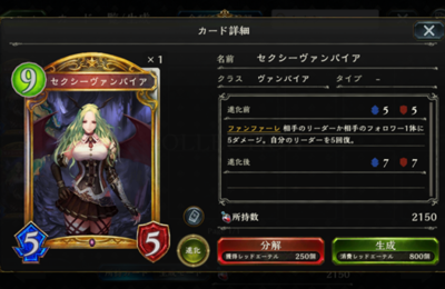 シャドウバースのセールスポイントのひとつであろう女性キャラクター。女性キャラクターが占めるカードの割合は多く、 セクシーで可愛いキャラクターも多いのでそれがモチベーションになっているプレイヤーも多いと思います。そんなシャドウバースの女性キャラクター達にスポットを当てて、魅力を改めて感じたいと思います。 【セクシー編】 セクシーヴァンパイア。その名の通りセクシーでございます。 能力もかなり強力で、ヴ…
