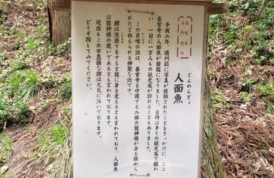 山形県にあります、善宝寺の貝喰池に行ってきました♬ 目的は、、「元祖!人面魚」を見るためです!! この金色の人面魚がよくテレビで見る人面魚だとおもいます! 多くの鯉は、池の奥にあるエサがもらえやすいところに集まっていましたが、 この金色の人面魚は、群れには入らずに離れたところでのんびり泳いでおりました。 貫禄を感じました☆ ピーク時は1日1万人きたそうですが、いまでもポツポツ観光にいらっしゃってる…