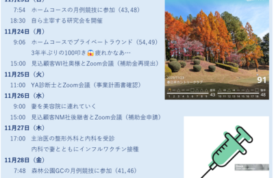 先々週は京都旅行に豊橋出張の大渋滞に仕事立て込みと 疲れをため込んで週末に突入 そして、最近不調の中、日曜・月曜に連荘ゴルフ そこで悲劇が起きた なんと、350ラウンドぶりの100叩き 言い訳はしたくないけど、やっぱり疲れが原因だったのかなあ やることなすこと、全てが上手くいかない 不運が重なり、思いもよらないミスを連発する 終盤には、頑張る気力さえ消え失せていた そう言えば、仕事でもそんな時期が…