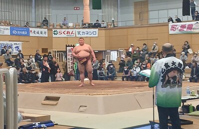 寒いが少しベンチ 90でセット 昨日、今日は乙亥相撲のスタッフ 熱海富士がきていた