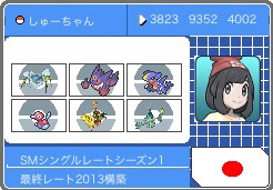 初めまして、TN:しゅーちゃんと申します。 ポケモンSMでシングルレート2000を達成したので使用していた構築について紹介したいと思います。初の投稿記事なので拙い部分もありますが読んでもらえれば幸いです。 ORASから環境が変わり、パーティーの組み方も変わりSMで試運転を50戦程し、パーティーを組む上で感じたことは ・Z技による崩し性能が強い →受け回すような構築は危険、パーティーにZ技持ちは必須…