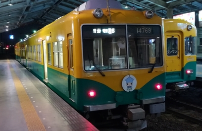 南富山に到着したらそのまま路面電車で富山駅に戻ろうと考えたのですが、行き違いで来た電車に飛び乗り来た道を戻りました。 下の写真はその車両を富山駅で撮ったものです。(手前の方ですよ) 地鉄オリジナルの車両。車齢は長くとも地方鉄道で自社の車両に乗れるのは非常に喜ばしいことです!! ちなみにこの車両のカラーリングには「かぼちゃ電車」という可愛らしいネーミングが。 駅にはヘッドマークがずらり。鉄ヲタにはた…