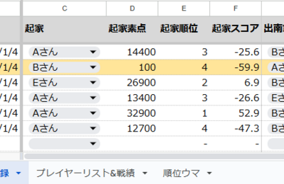 この記事では、2024年のナナキ宅麻雀Mリーグ(Mkaiリーグ)で戦績記録用に使ったGoogleスプレッドシートを紹介する。不特定多数の人の四麻の戦績を記録・集計するのに活用してほしい。 下のリンクにアクセスすると、自分のGoogleドライブにコピー可能。自己責任となるが自由に使用して頂いて構わない。 https://docs.google.com/spreadsheets/d/14ngpCRXR…