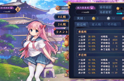 こんばんは。あなるほっけです。 しばらく前ですが、ジャンケツになったのでブログ書きます。 ↓前回 adohocc.hatenablog.com 【結果】 東風164戦、半荘16戦でジャンケツなれました。 半荘はほぼ打ってなくて、主戦場は東風です。 【振り返り】 ◆平均順位 100戦時点:2.26 昇段時点:2.30 下がりました。僕は弱いので妥当だと思う。前回までが下のクラスの成績も含んでいたので…