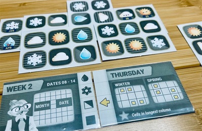 カードを重ねて今日の天気図を作るソロパズル 今回は、ただいまKickキャンペーン中のButton Shy Gamesの新作カードゲーム「The Daily Weather」をご紹介します。天気予報士になって、今日の天気図を予想しましょうという1人用のパズルですが、このゲームの肝は今日の日付の使い方!日付をゲームに取り込むのはこれまでも紙ペンでいくつか見たけど、これはかなり独創的でした。 まず、今日…