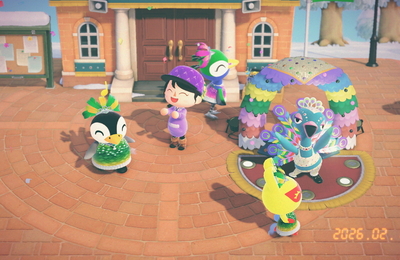 順調にイベントの準備が進む島に昇る朝日。 そして、遂にイベント会場の設営が完了したとニコ先輩から報告がありました!おめでとうニコ先輩! 音楽関係の知り合いがいるナッティーさん何者。 ここでイベントが開催される日も近いですね。 その後、無事に30軒目の別荘を造り終えることができました。長かったようなあっと言う間だったような、不思議な気持ちです。 お祝いパーティーを開いてもらいました。場所は島のカフェ…