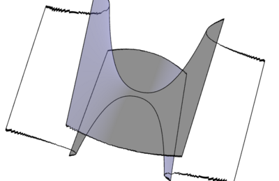 輪郭線の見え方の変化 その3(くちばし) 今回は輪郭線「くちばし」の見え方の変化を紹介します。「くちばし」は、視点の変化に伴って以下の変化が観察できます。 2つの輪郭線 2つの輪郭線が1点で接触した状態 2つのカスプを持つ輪郭線 以下が「くちばし」のそれぞれの状態の時の見え方になります。 2つの輪郭線 2つの輪郭線が1点で接触した状態 2つのカスプを持つ輪郭線