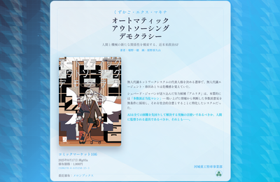 ご無沙汰しています。夏コミ新刊が完成しましたのでお知らせします。 そして特設サイトはこちらです。試し読みなどもありますので是非ご覧ください。 kuzukago-ex-machina2.vercel.app 日本中に散らばったあなたの街のAIである「無人代議エージェント」からくみ上げられた市井の声を政策に変換するシステム、無人代議ネットワーク。その全体を代表して政策提言をする存在である「代表人格」は…