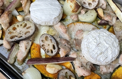 2年ほど前までは、毎年冬になると、 蒸し野菜ばかり食べていました。 ほうれん草を初めて蒸した時は、甘さに感動したなぁ… 我が家は全員、野菜好き。 しかし、去年はオーブン焼きに目覚め、 根菜類をよく焼きました。 そして、今年は、 野菜と鶏肉、その上にカマンベールチーズを丸々一個のせて オーブンで焼く、という料理にどハマりしています。 そう、ちょっとした“チーズフォンデュ”風になるんです。 作り方はと…