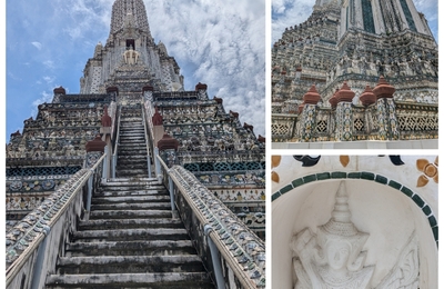 2024年8月バンコク旅行6日目 バンコク旅行最終日。市内の寺院をめぐります。 ワット・アルン ワット・ポー ワット・プラケオ 帰国 ヒルトンのとっても素敵で美味しい朝食をゆっくり味わってからのチェックアウト。荷物を預かってもらい、Grabでワット・アルンへ。 ワット・アルン 暁の寺の名前でも有名なチャオプラヤ川沿の寺院。陶磁器や貝殻で装飾された仏塔がキレイ。 民族衣装で写真を撮る目的の観光客で大…