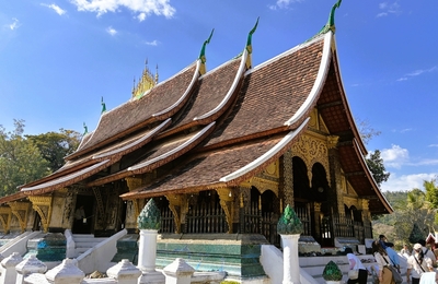ラオスに旅行に行ってきました。今は写真を整理して私のホームページにまとめるのに忙しいです。 ラオスに行って印象に残ったことの一つが寺が優雅で素敵だと言うことです。ラオスの寺はタイの寺に似て黄金色の仏塔があったり、屋根が何層にも重なり、端が反り上がるデザインになっています。でも、タイの寺は派手で装飾的ですが、ラオスの寺の方が落ち着きと柔らかさがあります。タイと同じように金は使いますが、深い赤や黒も多…