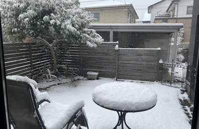 なかなか積もったよー! 2/8(日) 朝からじゃんじゃん牡丹雪 お昼前には小雪になり、そのまま晴れてどんどん溶けた~ 朝からいそいそ選挙投票へ出かけて 帰宅後はモネとお庭で遊んでみることに! ふかふかだよー! 最初こそは少し怖がってブルブル震えていたけれど 数分後にはおおはしゃぎなのである! ひゃっほーい!! さすがワンコ 庭駆け回るー! 動画が載せられないのが残念 捕まらないよ! モネが走り回る…