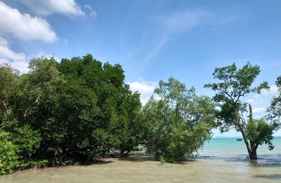 今日は、青空が見たくなっちゃったので、クラビ旅行記に戻ります。 ライレイウエストから、イースト側に出ました。最終的にプリンセスケーブのあるプラナンビーチを目指してます。 マングローブ。 船着場、青い浮島の桟橋が出来たんですね。 こんな細道を歩いてます。 聳える絶壁♪ 振り返った方。こっちはちょっと四角っぽく。ロングテイル、月と星はイスラム教の人のかな。 とってもお高いホテル。敷地に絶対、部外者を入…