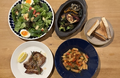 11月1日(土) ・ フリッジトマトソース ・ サラダ ・ グリルドベジ ・ ポークソテー ・ 全粒粉パン 11月2日(日) ・ チャプチェ ・ サラダ ・ ナムル3種盛り ・ まぐろの切り落とし漬け ・ ネギにまみれて何かわからないもの ・ キムチ ・ ネギわかめスープ 11月3日(月) ・ 若者のアイドル ・ サラダ ・ ツナサラダのチーズ焼き ・ グリルドベジ ・ にら玉スープ 11月4日(…