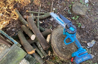 ちょいと早いですが サンタさんからのプレゼント頂きました。 とっても欲しかったミニチェーンソーです。 子犬サイズですね。 なのでこのミニチェンソー、 「ポチタ」と名付けました。「チェンソーマン」の🐶 木こりの息子さんが伐採した木を焚き火用に短く切るだけだからお手軽な値段のでとりまいいか。 木こりのおじさんのチェンソーは RYOBI リョービのお高いやつでした。電動ドリルはマキタだったな。 プロフェ…