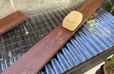 今年も昼間の気温が10度前後になってきました。日差しがある日は水面でまだまだ泳いでますが、エサの食べっぷりも悪くなってきたので、冬モードにすることにしました。 トロ舟も残ってますが、黒色発泡スチロールに水槽を変えて、波板で蓋をしてます。 こちらは、キンカンと初めて花が咲きそうなアロエ。 キンカン アロエの花の蕾
