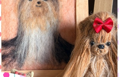 オーダーしていた羊毛フェルトが届いたぁ❣️ ほんわかした雰囲気 お気に入りになりました🥰 私の作った(超大作💪)あみぐるみヨーキーと並べて飾ったよ 今じゃカギ編み図面も読めませ〜ん😅