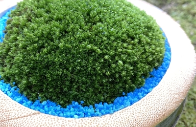 竹を器の代わりにして苔で島を表現してみました 土の上の部分だけ 100均で買った青い砂を敷いて海に ちょっと苔が大きすぎたかな 無人島ぽく見えんな koke0328 竹は油抜きしたほうがいいみたいやなあ